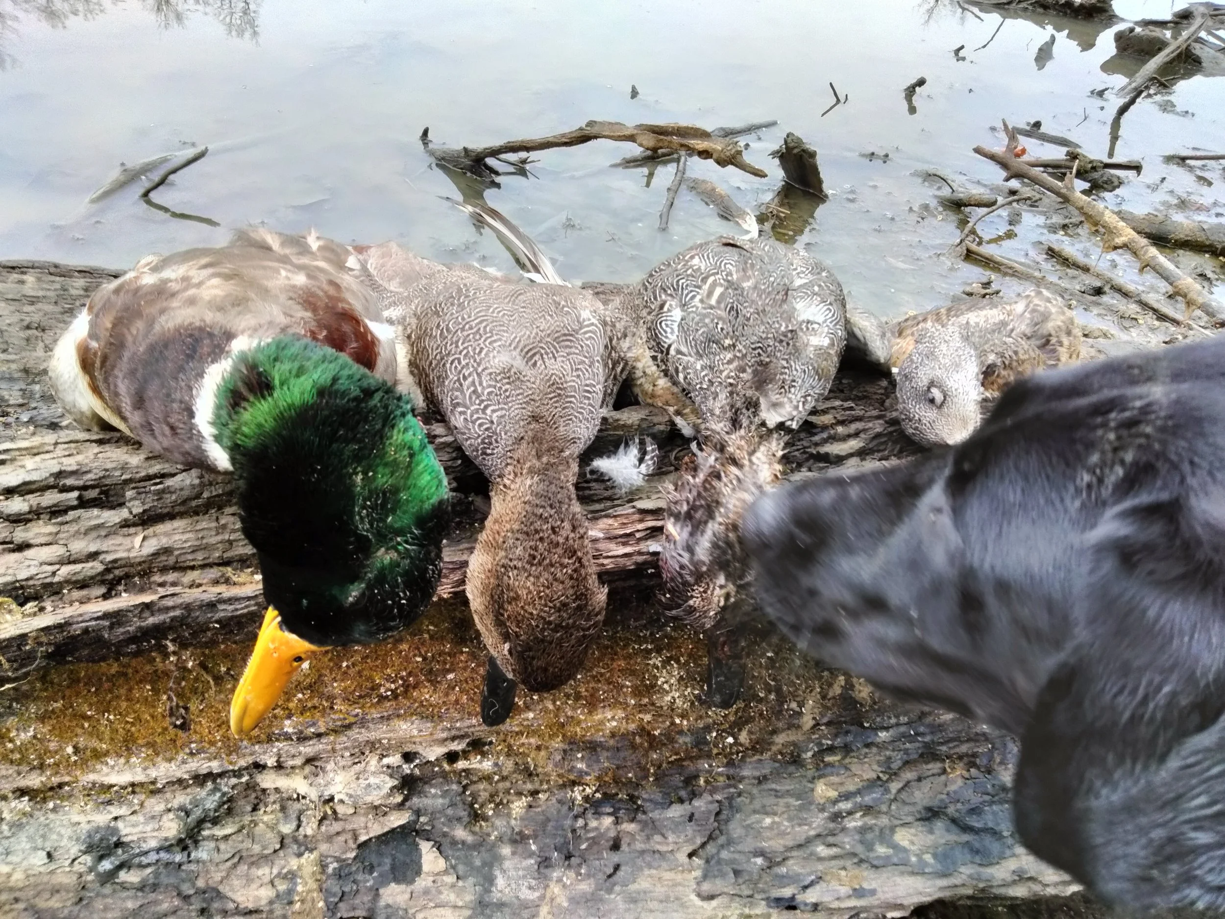 Her next blind retrieve would be much more difficult. A drake mallard with white caps around it, making it IMPOSSIBLE to actually see this bird that was roughly 40-50 yards out from the bank. I steadied her and sent her….she stopped in the water because she could not see the bird still, then I signaled back…after following my command for a second time, she caught wind and then actually got close enough after picking her head above the water to see it. This mallard would dive numerous times with her swimming in the white caps, until she said your time is up and grabbed the bird. I whistled her back and she brought the bird to my hand…still alive.